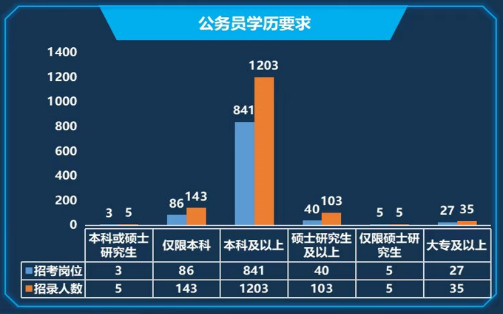 国考招录学历要求具有大学专科及以上文化程度。根据有墨公考分析,国考四川省职位中学历标记为“本科”的职位招录人数所占比例最大,占比为80.5%,说明本科学历为国考招录主体。具体情况如下图: