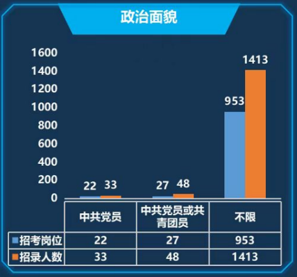 本次国考四川省招录的岗位数中,有953个岗位、1413人数不要求党员身份,占比高达95%。可以说,是否具备党员身份,并不是一个明确的限制因素。具体情况如下: