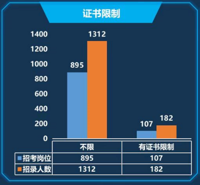 本次国考四川省招录的岗位数中,有证书限制的岗位有107个,仅占整体的10%。可以说,证书并非是参加本次国考的拦路石。具体情况如下表: