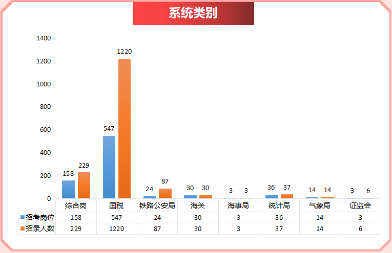 通过表格可以发现,从2024国考四川地区招考人数情况看,国考四川省招录公务员涉及的系统有国税、综合岗、海事、海关等8个系统,其中招录人数最多的是国税系统,1220人,其次是综合岗招录229人。25考生可以根据24年招录情况选择自己可报的岗位。